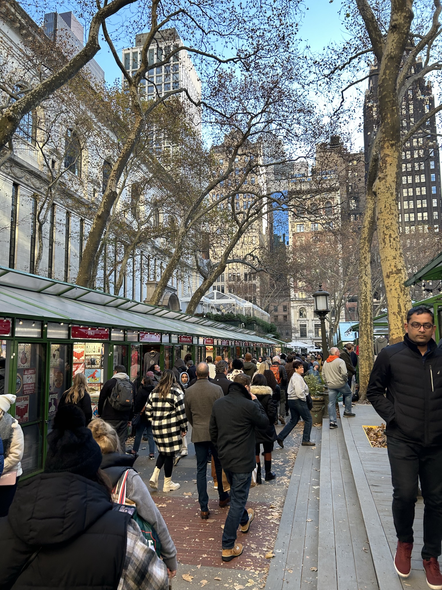 If you are like me and loathe being in big crowds, and can’t stand getting shoved around, then I suggest heading to the Bryant Park Christmas Markets. While exploring the city I visited 6 different markets and I found the ones at Bryant Park to be the prettiest, most charming, and most centrally located.