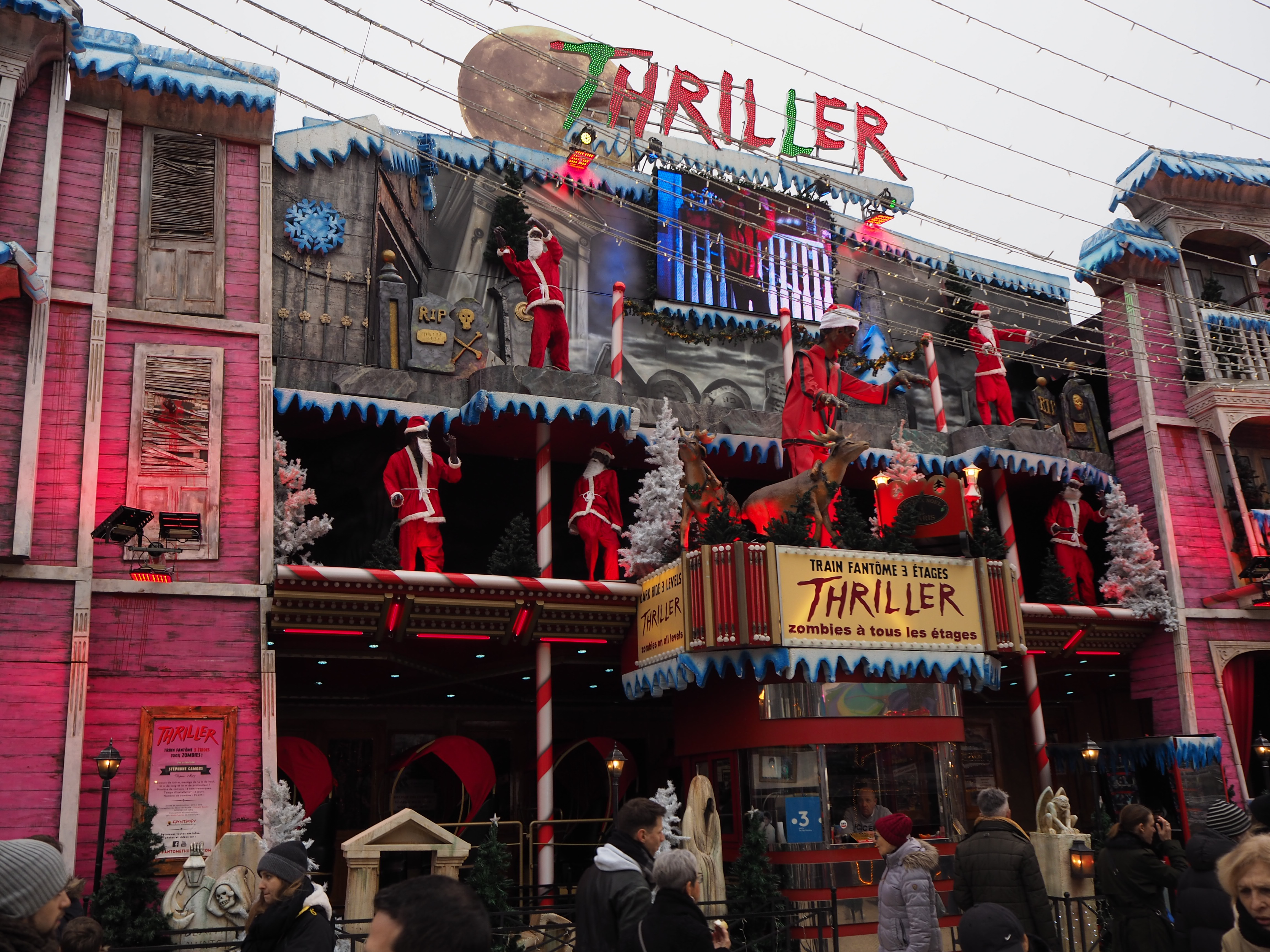 I visited La Magie de Noel (The Magic of Christmas), Tuileries Garden Christmas Markets in December 2018. Located between the Louvre and Place de la Concorde, the markets feature over 100 Swiss-style chalet stalls selling specialty food & drinks, artisan crafts, gifts, and more. There are also carnival rides with an enormous ferris wheel, ice skating rink, and numerous Christmas themed rides to enjoy. This includes a very unique zombie Santa ride and haunted house (photo 4 below) which I have not seen anything like since!